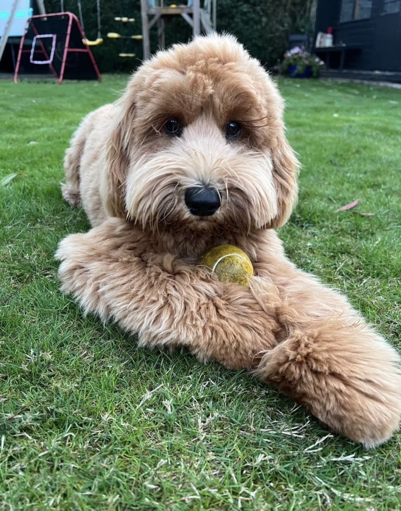 Tan, known as “Sunny”, is a true miniature Australian Labradoodle with the sweetest nature. Standing at 14 to 15 inches tall and weighing around 10 kilos, he is a lovely small size, full of charm, fun, and character.